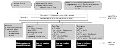 Depending on the scalar (revenues, earnings, book value or cash flow), you can compute a variety of multiples, and if you add on the choices on timing for the scaling variables (trailing, current, forward), the choices multiply. To the question of which multiple is best, a much debated topic among analysts, my answer is ambivalent, since you can use any of them in pricing, as long as you ask the right follow-up questions.