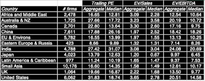 The perils of investing based just upon pricing ratios should be visible from this table. Two of the cheapest regions of the world to invest in are Latin America and Eastern Europe, but both carry significant risk with them, and the third, Japan, has an aging population and is a low-growth market. The most expensive market in the world is India, and no amount of handwaving about the India story can justify paying 31 times earnings, 3 times revenue and 20 times EBITDA, in the aggregate, for Indian companies. The US and China also fall into the expensive category, trading at much higher levels than the rest of the world, on all three pricing metrics.
