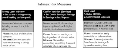 While there are some who use debt loads as proxies for company risk, and we will come back and look at differences across sectors and industries in a later post, it is a narrow measure, since a young, risky, high growth company with no debt would be classified as low-risk, if it is not debt-laden.
