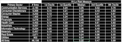 If you are interested in a less broad categorization, you can check out betas by industry at the end of this post.As you review the sector rankings using the varied risk measures, you can see why the heated debates about which risk measure to use is often overdone, since they, for the most part, rank the sectors similarly, with the sectors having less earnings volatility and fewer money-losers also having less volatility in stock price, smaller price ranges and lower betas.