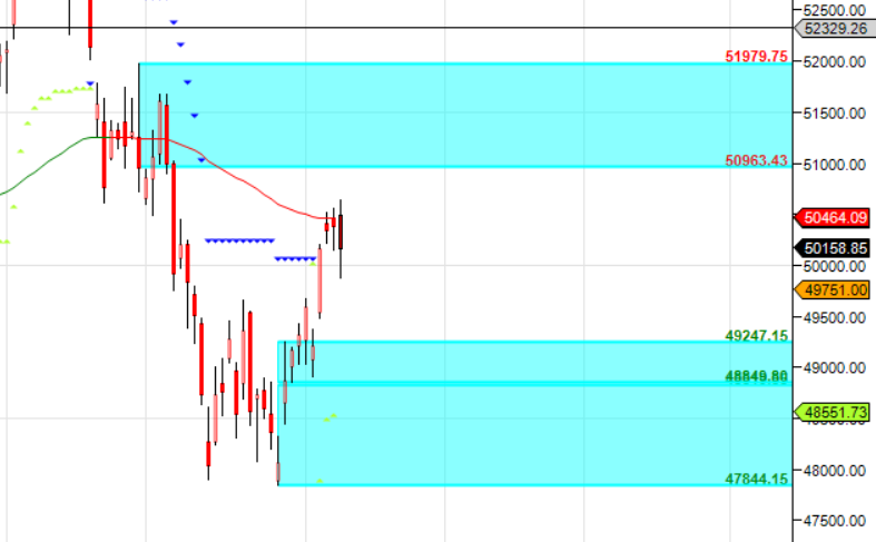 51558 is Monthly Resistance zone 49701is Monthly Support zone.