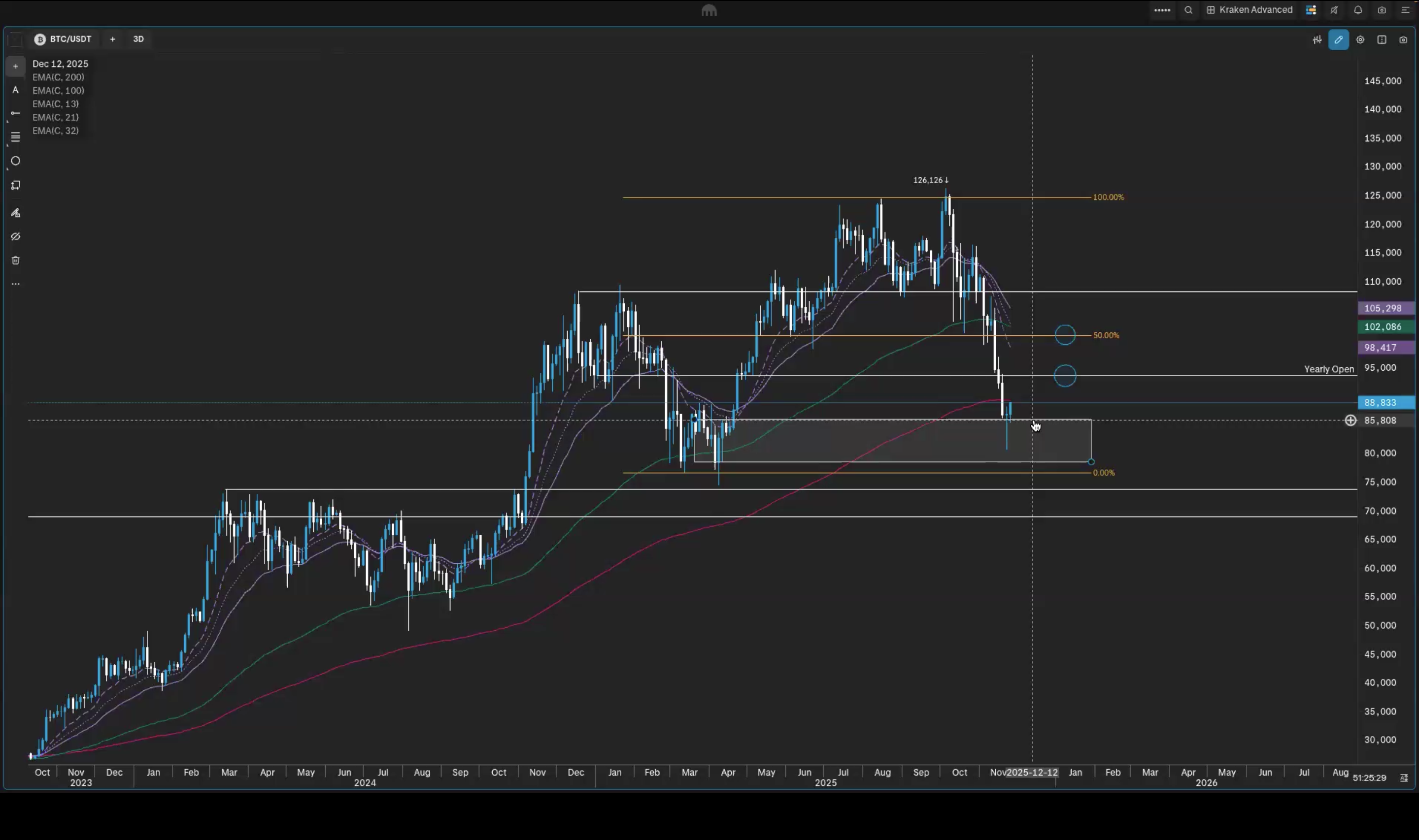 Specifically, BTC has lost the 3-day 100 EMA — a level that held throughout the entire bull market so far.