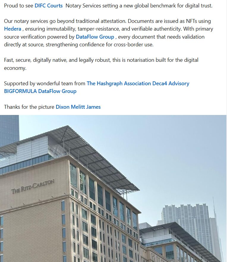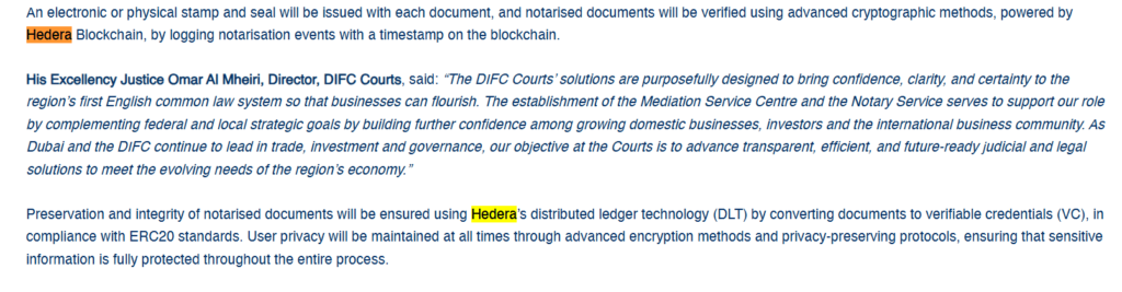 DIFC Courts Set New Standard for Digital Notarisation Using Hedera