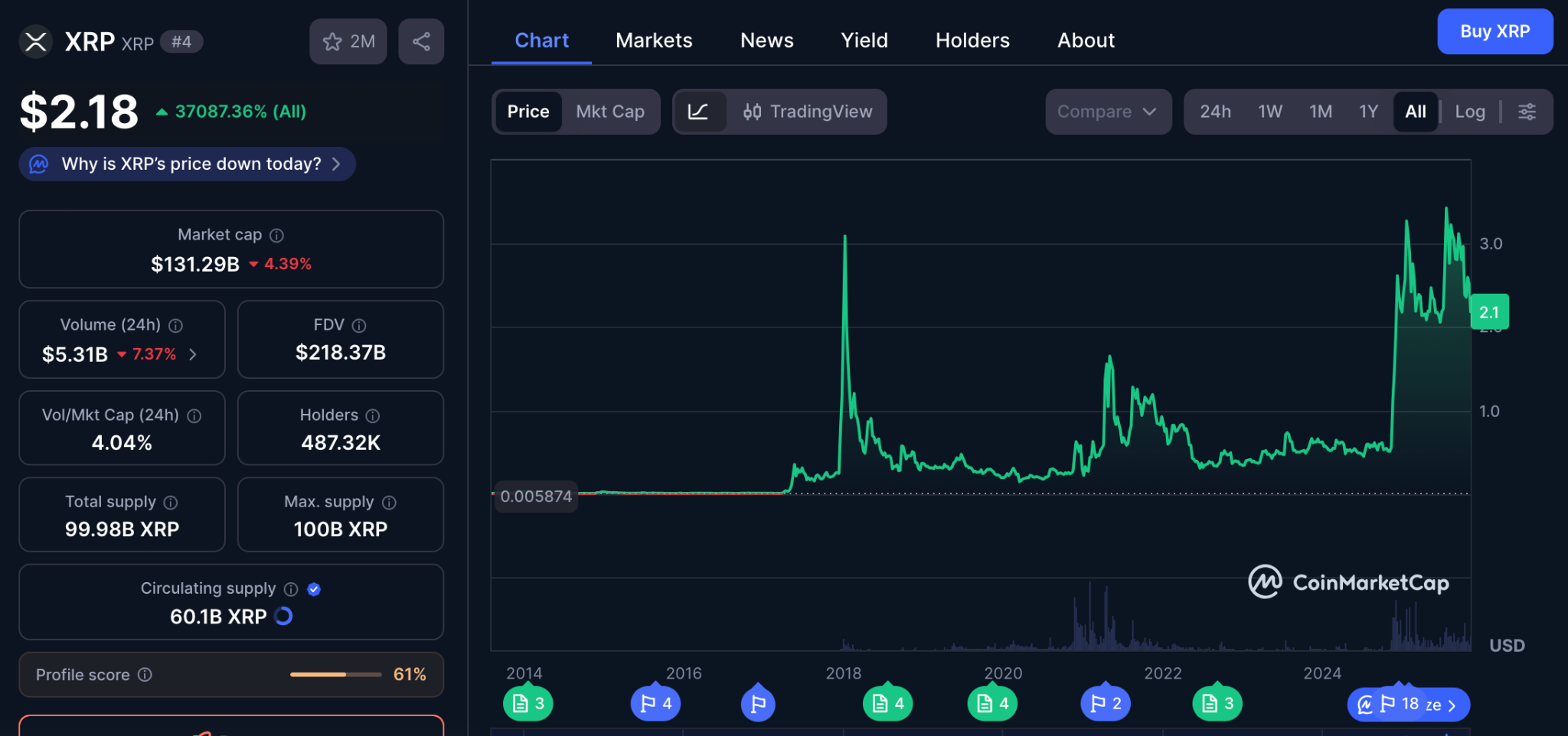 Ripple’s XRP remains the institutional payments token of choice, powering cross-border settlements for banks and fintech firms. Nobody can deny that it delivers utility. The coin is fast and low-cost, achieving what it set out to do. But that’s kind of the problem. XRP has seen explosive price increases from late 2024 to early 2025.