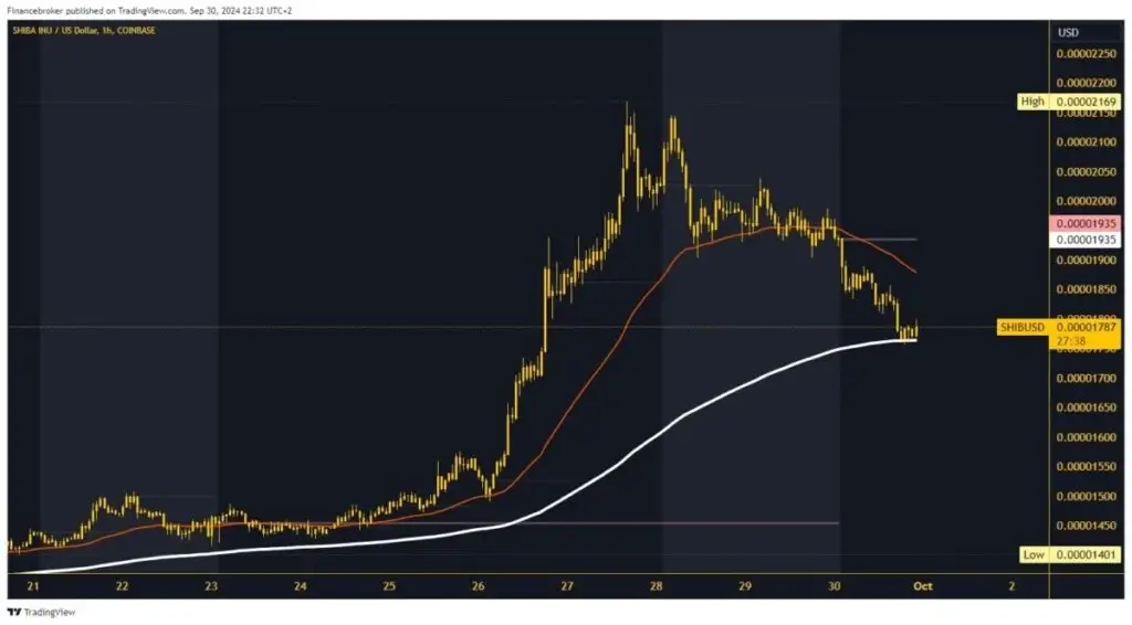 Last week’s bullish run of the Shiba Inu price was stopped on Friday at the 0.00002169 level. Over the weekend, the price retreated and fell below the 0.00002000 level. On Monday, the pullback below the EMA 50 moving average continued. This caused the price to fall to 0.00001750 and look for support in the EMA 200 moving average. For now, we have the moving average’s support and hope to stay above it.