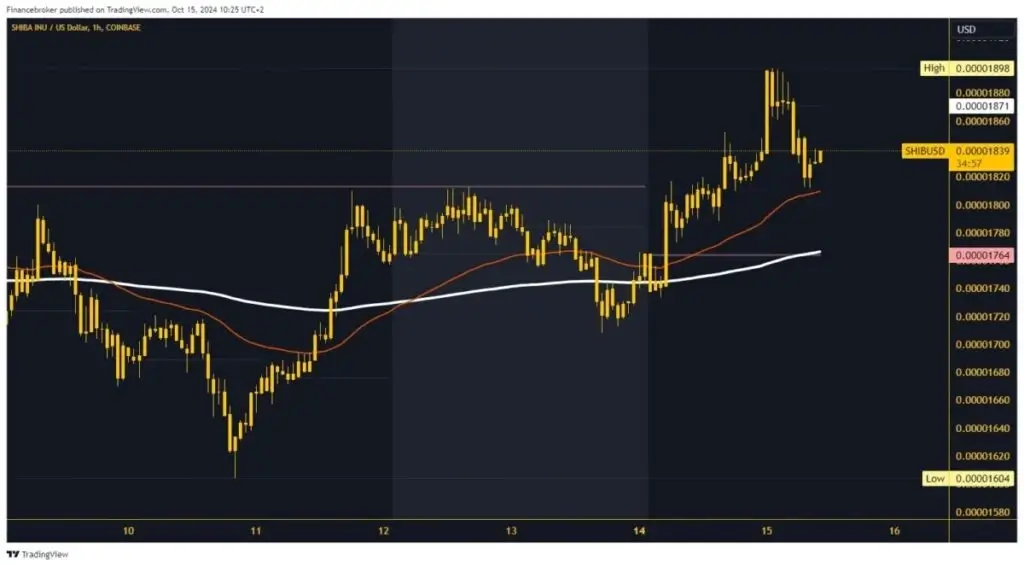 - The price of Shiba Inu rose to 0.00001898 level this week