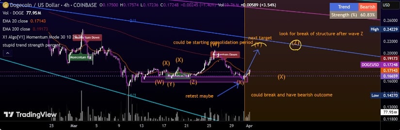 DOGE appears to be in a consolidation phase, with a breakout likely after wave Z, but if not, a bullish or bearish impulse wave could follow. Source: Mochoa777 on TradingView