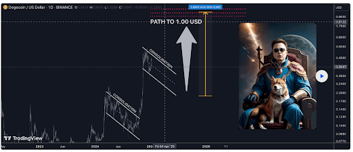 In a TradingView post, Project Syndicate made his Dogecoin price prediction, which showed that DOGE could reach the psychological $1 price level this year. Specifically, the analyst’s accompanying chart revealed that the foremost meme coin could reach this price target by mid-2025.