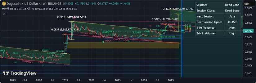 Dogecoin (DOGE), the original meme coin, is once again at the center of crypto market discussions as its price tests a crucial resistance near $0.1750.