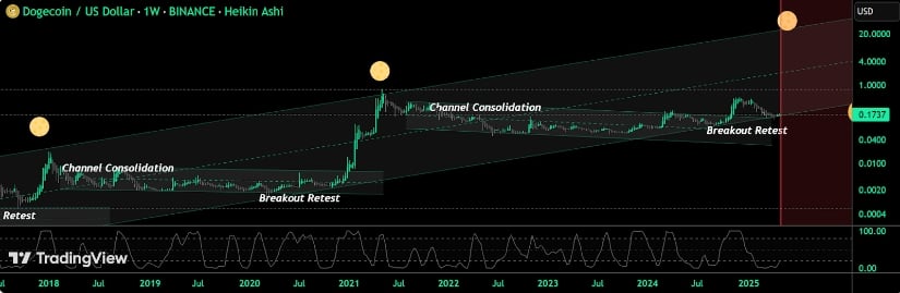 DOGE has broken a 4-year consolidation, now resting on breakout support with an oversold weekly RSI—summer could be explosive. Source: Djvybe on TradingView