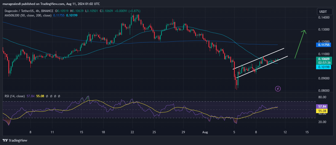 On July 29, the Dogecoin price fell from $0.13 and reached the $0.081 support zone by Aug. 5. However, bears could not sustain the trend, as bulls took control of the price, propelling DOGE through a rising channel pattern.