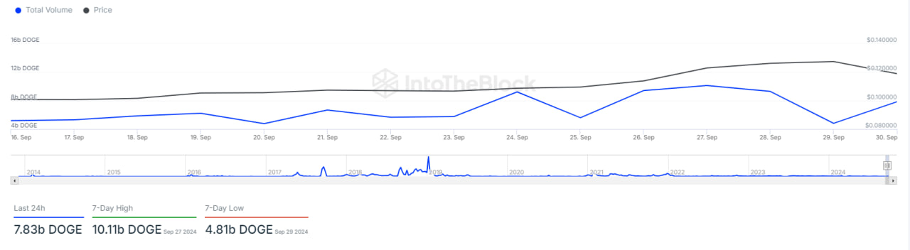 Meanwhile, Dogecoin’s large transactions have surged, indicating an accumulation trend among DOGE whales. IntoTheBlock data shows that 7.83 billion DOGE coins have been traded in the last 24 hours. This is significant considering how these whales could contribute to the Dogecoin price rally.