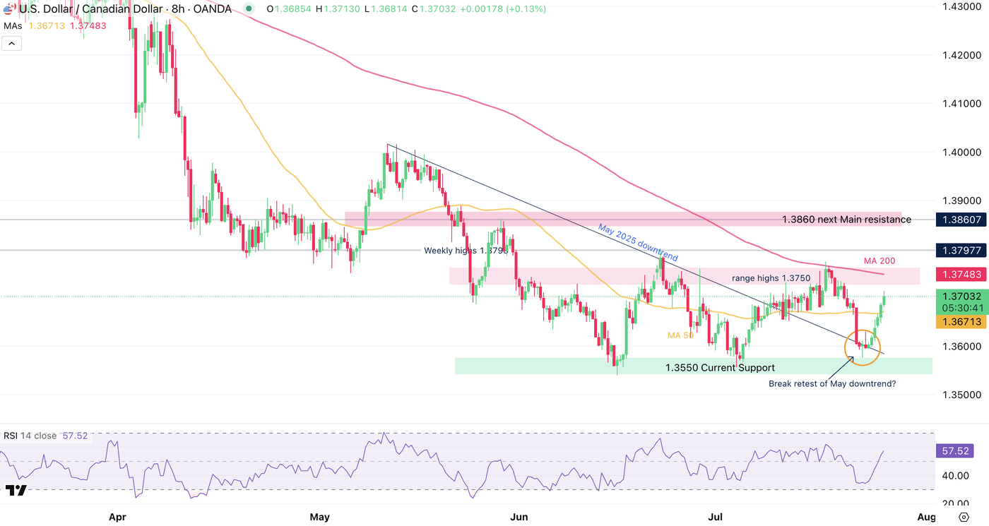 Price action is still within the range but the ongoing rally is very strong – Watch for reactions around the 1.3750 range resistance.