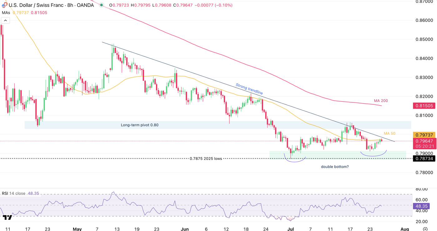 Buyers will still have to break the strong downward trendline but a double bottom may have freshly formed.