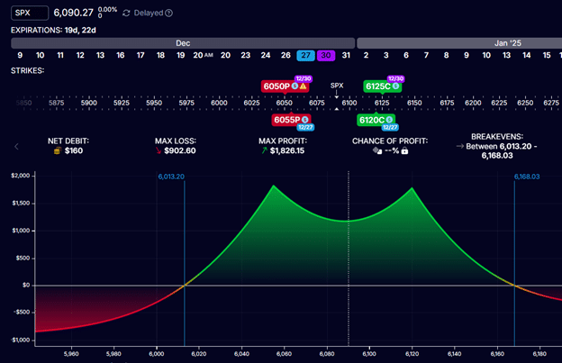 Like the iron condor, the short strikes are closer to the money (meaning closer to the current price of SPX) than the long strikes.