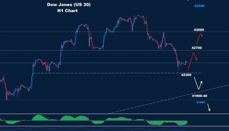 BySilas WAt the end of Thursday, the Dow Jones Index (US30) rose by 0.77%. The S&P 500 Index (US500) was up 1.04%. The Nasdaq Technology Index (US100) is up 1.43%. Stocks found support after Thursday’s release of the January Producer Price Index (PPI) report, which bodes well for the upcoming PCE Price Index report. The US…