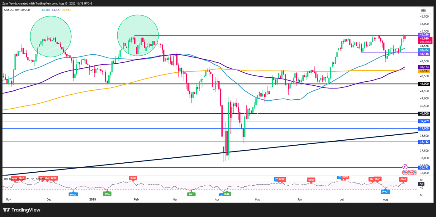 Dow Jones Daily Chart, August 15, 2025