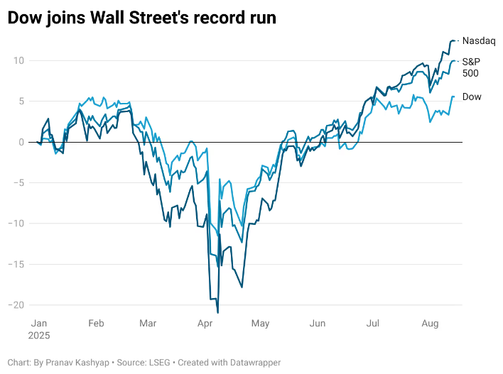 The Dow climbed past its previous high of 45311 from July 28, boosted by a surge in UnitedHealth Group shares after Warren Buffett’s Berkshire Hathaway announced a new investment in the company.