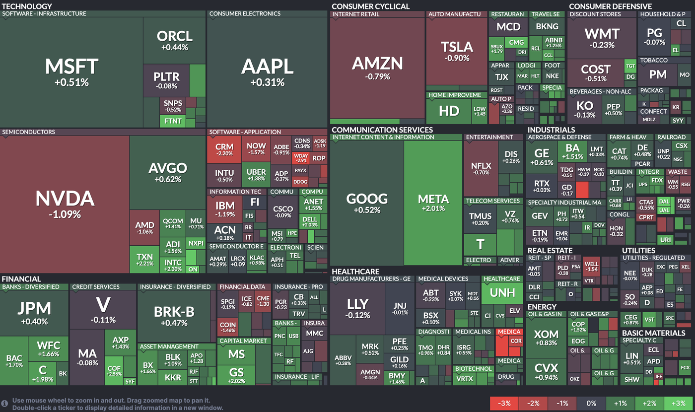 Current session Equity Heatmap, August 12, 2025 – Source: Finviz