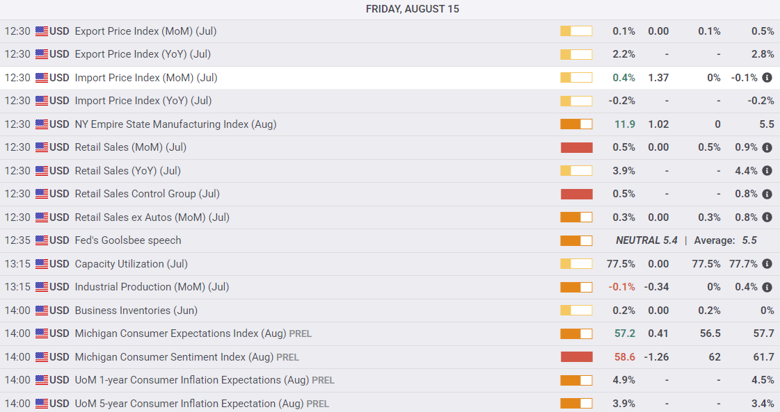 US Retail Sales for July came in broadly as expected, rising 0.5% MoM while June’s figure saw an upside revision to 0.9% MoM. While up is generally considered good, US Retail Sales data is nominal, meaning the economic indicator does not differentiate whether an extra dollar spent at the checkout is due to increased spending capacity or higher prices resulting from trade taxes.