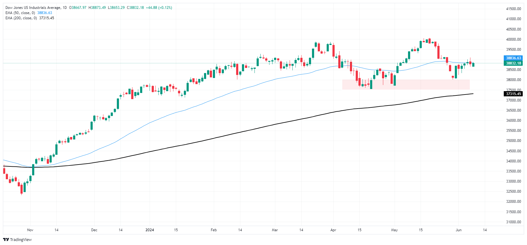 The Dow Jones is looking for a foothold on Monday, holding above 38,700.00 despite a lack of upwards momentum. The major index is still down from Friday’s peaks near 39,100.00, and June’s near-term bullish rebound could be coming under threat.