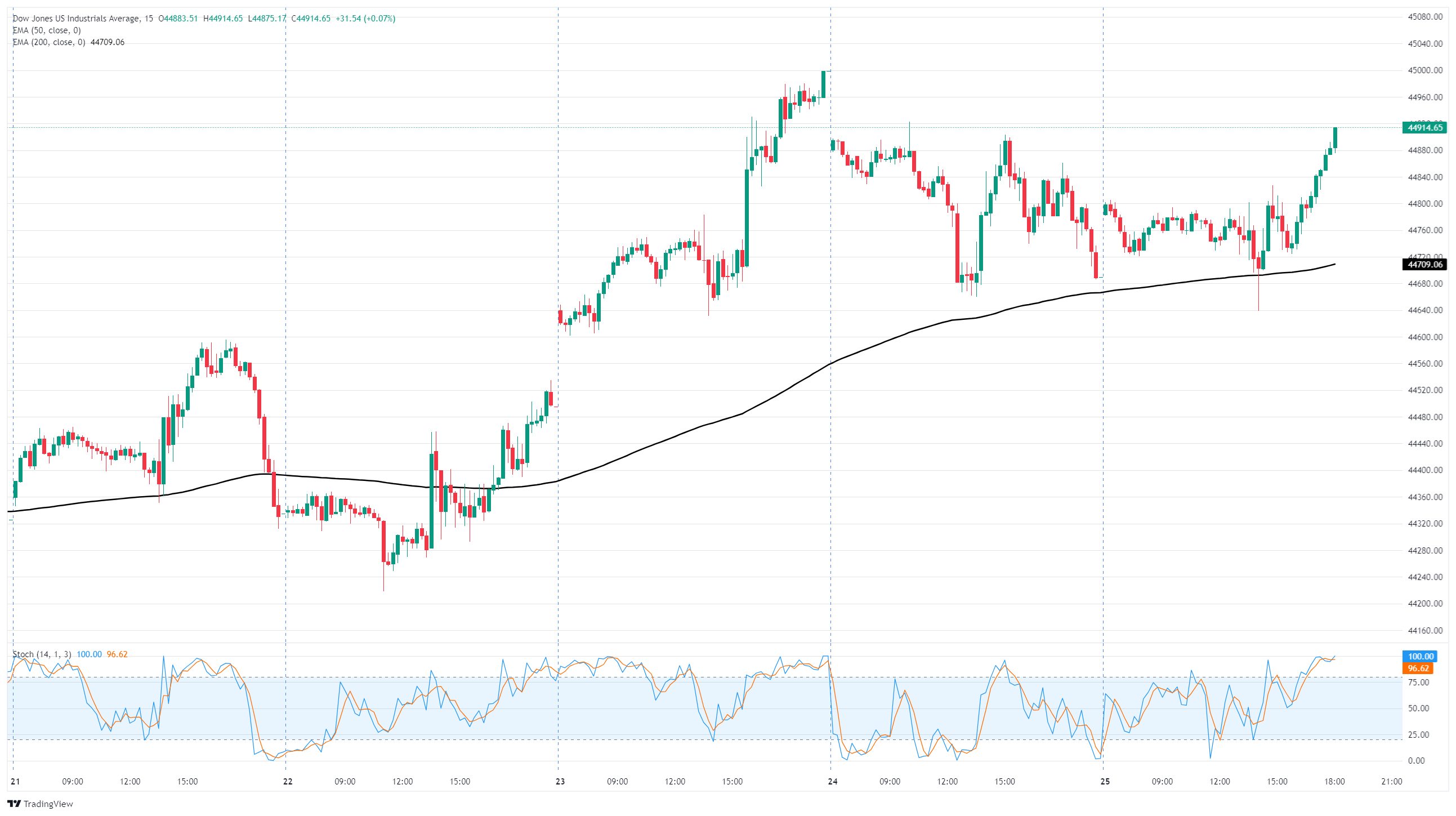 Dow Jones 15-minute chart
