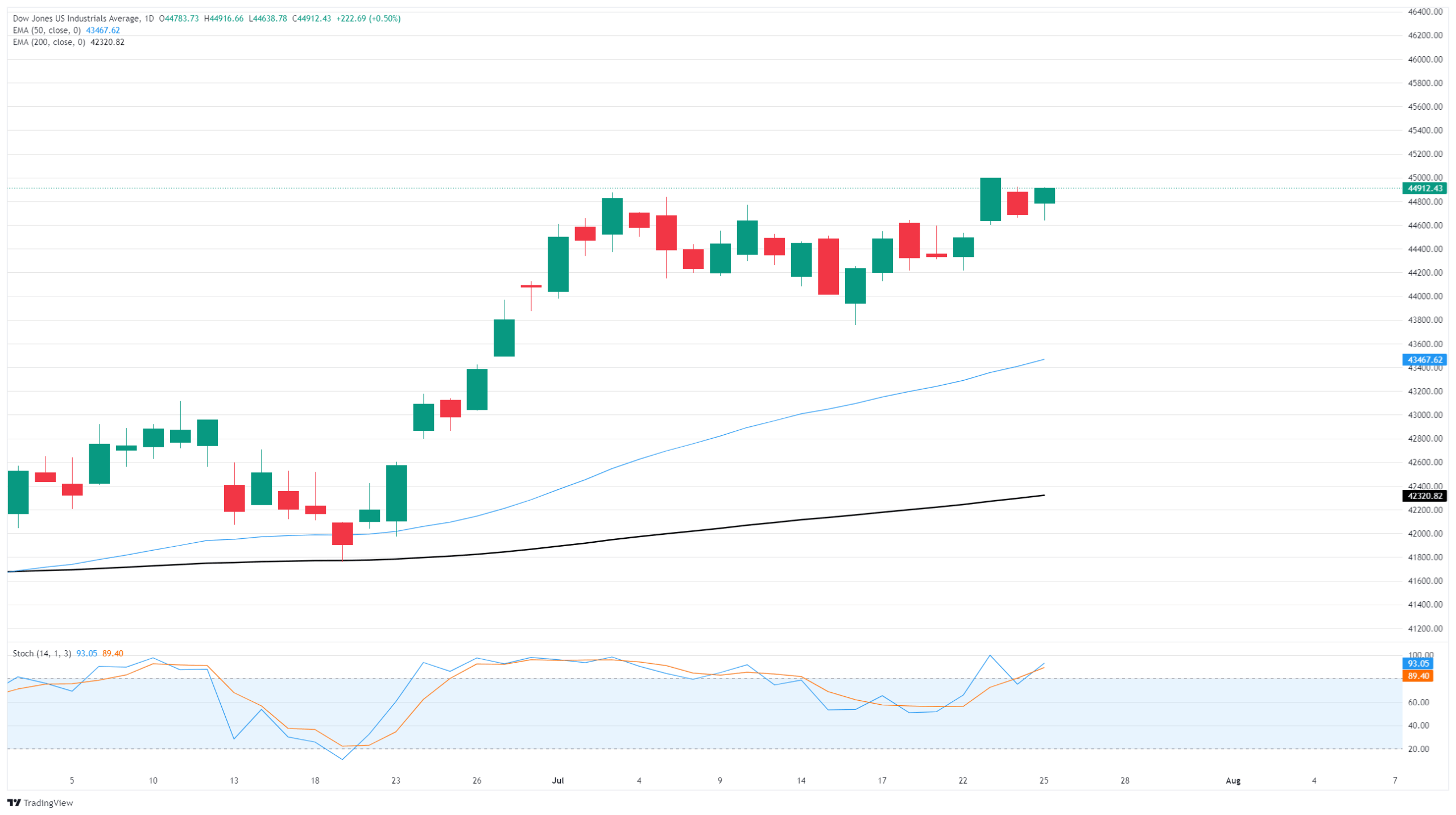 The Dow Jones’ recovery on Friday has pushed the index back into the bullish side of recent congestion, and the DJIA is holding steady near all-time highs as bullish price action battles for a foothold near 45,000. Despite a firm upswing this week, the Dow is struggling to reclaim record high territory as its major index peers outperform the comparatively tech-light Dow Jones.