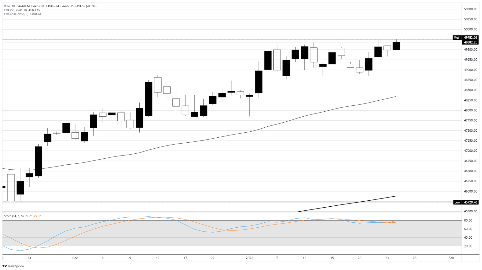 Safe-haven demand was evident on Monday, as Gold surged to a new all-time high above $5,100 per ounce, reflecting investor caution over political and fiscal risks. Despite this, broader economic signals remain relatively positive. Consumer spending appears resilient, and corporate profitability remains solid, with companies continuing to invest heavily in areas such as artificial intelligence and productivity tools.