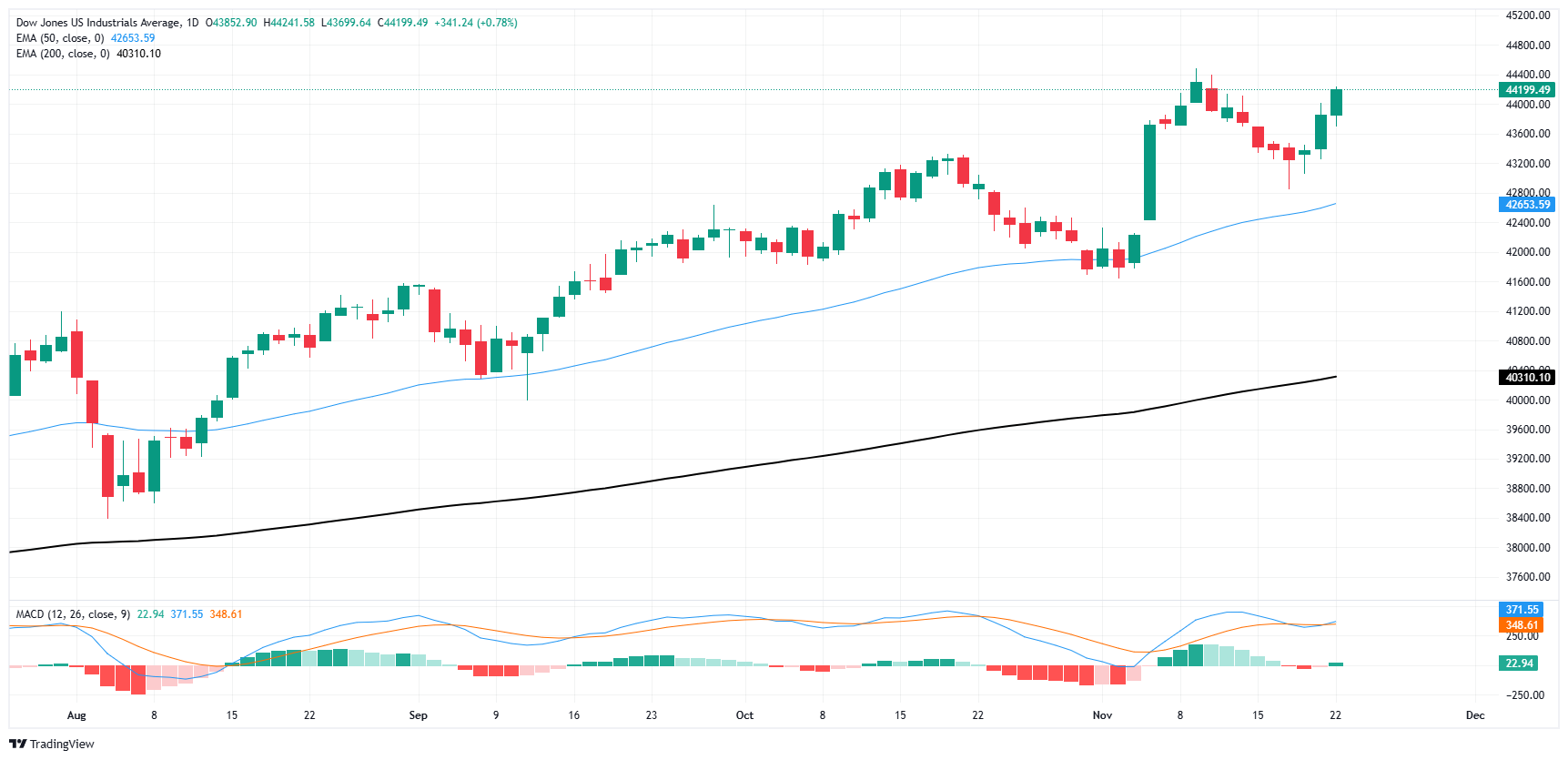 The Dow Jones Industrial Average (DJIA) has snapped its recent soft patch, extending its midweek bullish pivot into a firm Friday performance. The Dow Jones is on its way to finishing another trading week on the firmly bullish side, up around 1.8% from Monday’s opening bids but still a little shy of last week’s record highs near 44,485.