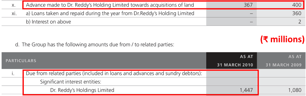 During FY2008-FY2010, when DRL was expanding its manufacturing capacity by installing more manufacturing plants, then it purchased land from its promoter group company, Dr Reddy’s Holdings Limited for ₹144 cr.