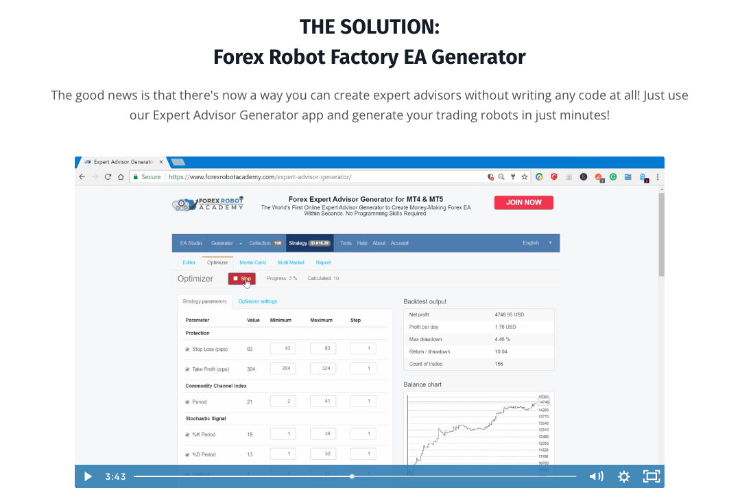 Forex Robot Factory automatically generates random trading strategies and backtests them.