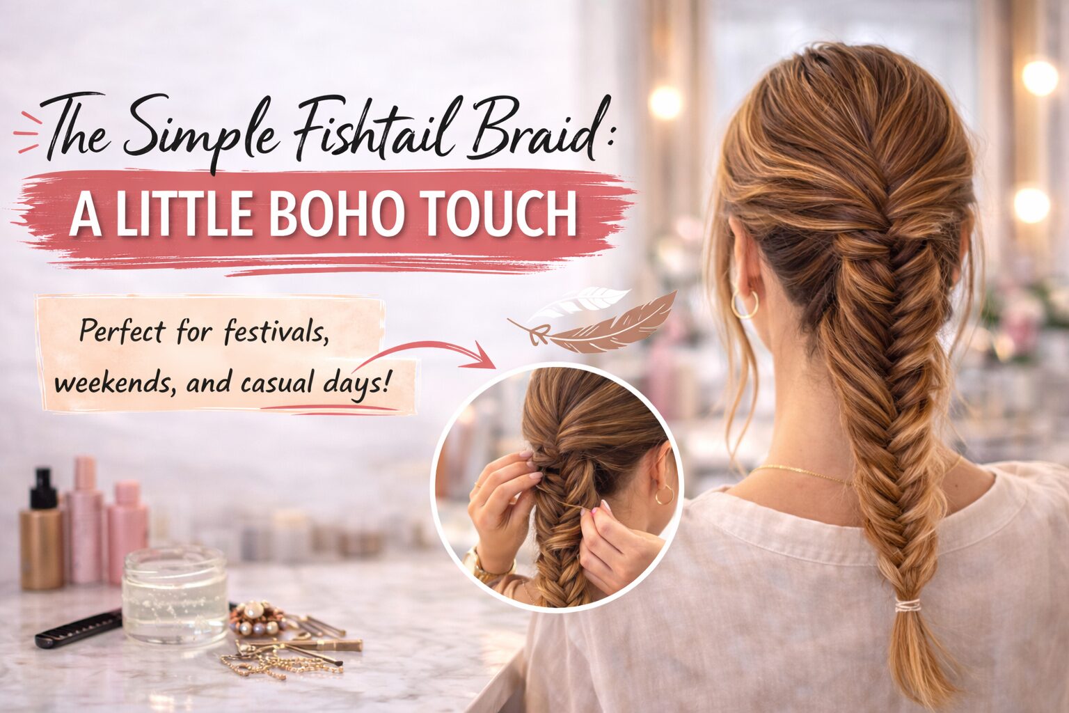 Fishtail braids look intricate but are easy to do. Divide your hair into two sections and weave small pieces from each section together. This boho braid adds personality to your look.