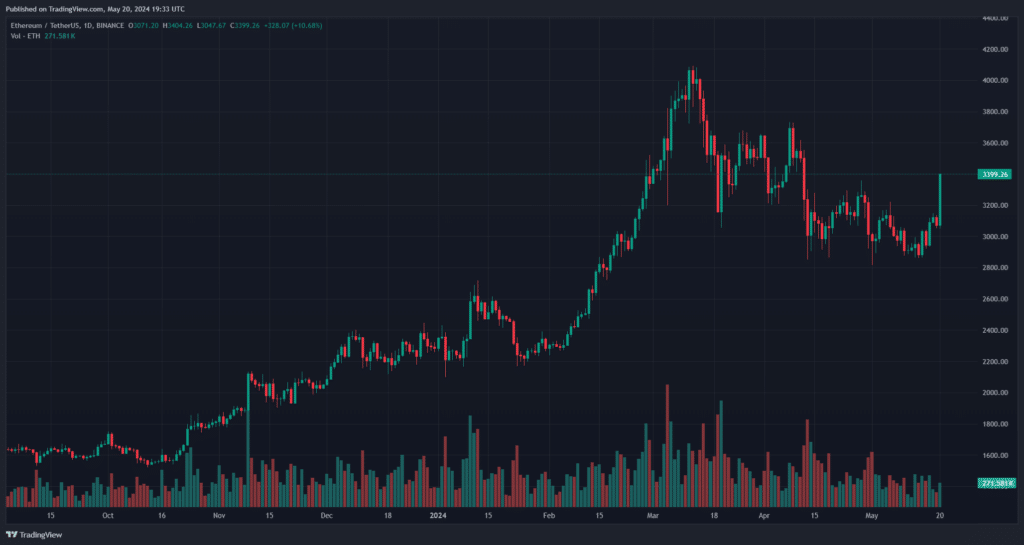 The price of crypto’s top altcoin Ethereum (ETH) gained 9%. The token has experienced price swings in recent hours, but traders may also be cautious due to forthcoming decisions from the U.S. Securities and Exchange Commission (SEC) on spot ETH ETFs.