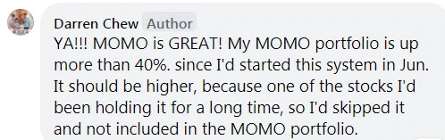 “My MOMO portfolio is up more than 40% since I started this system in June.” — Darren