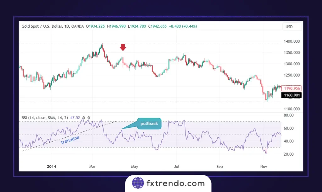 - For Sell: If the RSI breaks below a trend line and then pulls back to it, this indicates a potential downward movement. Traders can enter a sell trade when the RSI falls off the trend line.