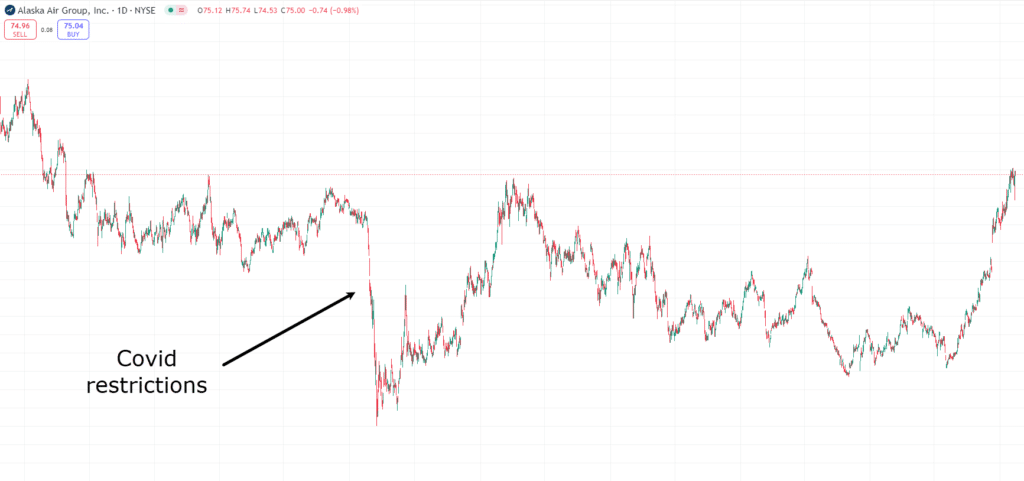 Let’s assume you decided to buy ALK shares when the price dropped during the COVID lockdowns with the knowledge that the airline would eventually be back up and running.