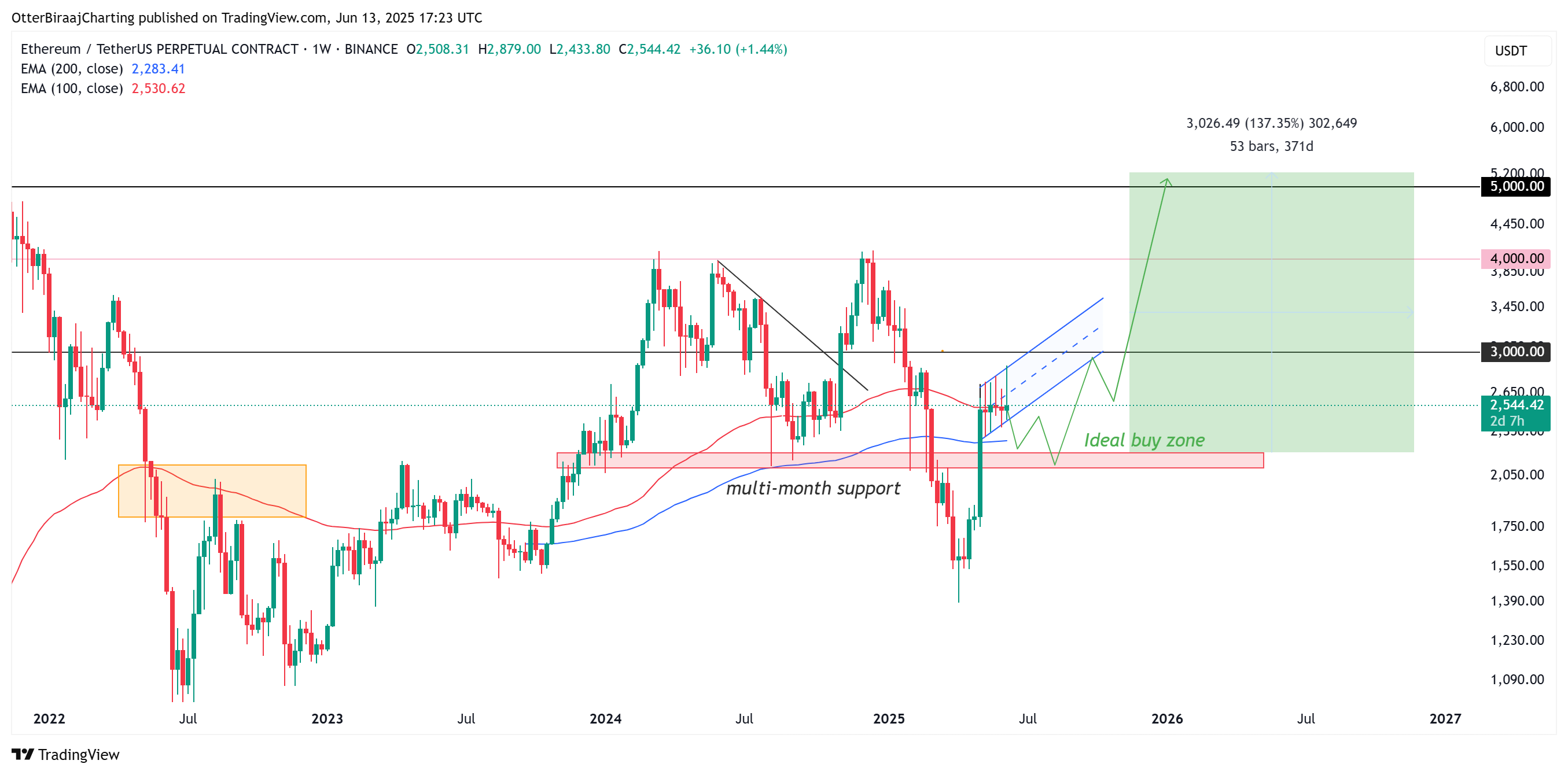 The $2,100-$2,200 is a multimonth range, which previously acted as support from the end of 2023 to August 2024.