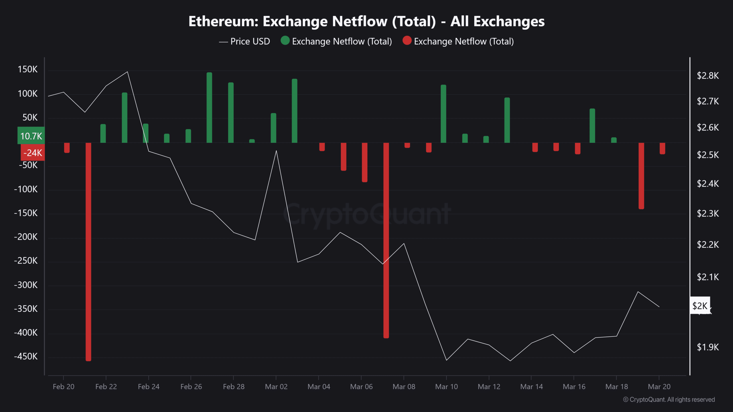 Fundamentals are key to confirming this trend. As ETH reclaimed the $2k level, large capital inflows hinted at a potential bottom formation.