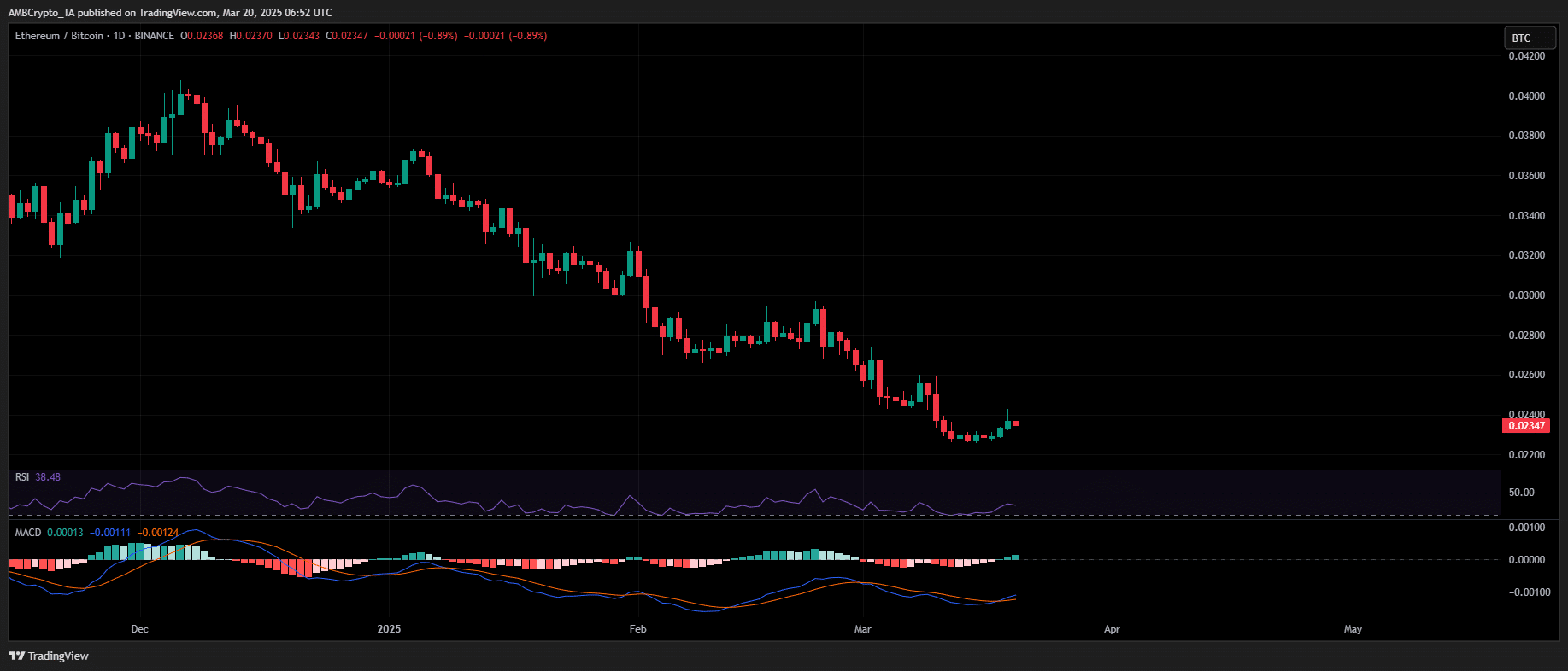 However, for Ethereum to establish dominance, ETH/BTC must break key resistance at $0.025, backed by a sustained capital rotation from BTC into ETH.