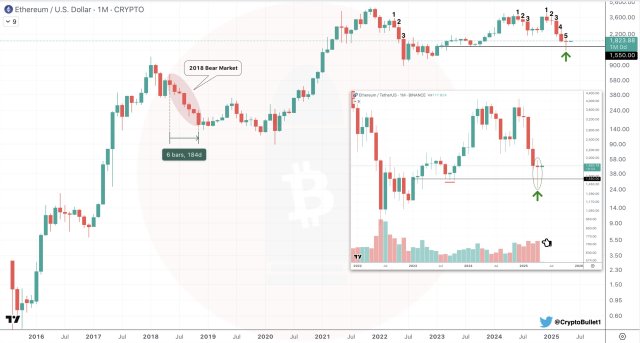 If 2025 sees a similar trend to 2018, then the month of May, which has already started out in the green for Ethereum, could see the price fall further. In such a case, the ETH price could be looking toward the end of 2025 for a sustained recovery.