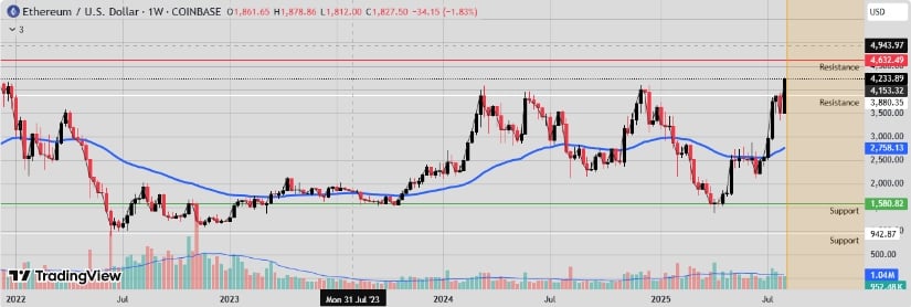 As history shows, once Ethereum clears a major resistance level, sustained rallies often follow. If buyers can defend the $4,200–$4,300 zone, the $4,500–$5,000 target may be more than just speculation—it could be the next stop on Ethereum’s ongoing bull run.