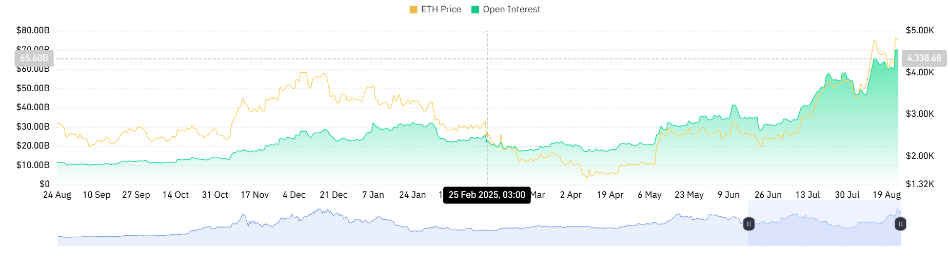 Often, when capital steadily flows into Futures, it reflects investors either demanding long or short positions.