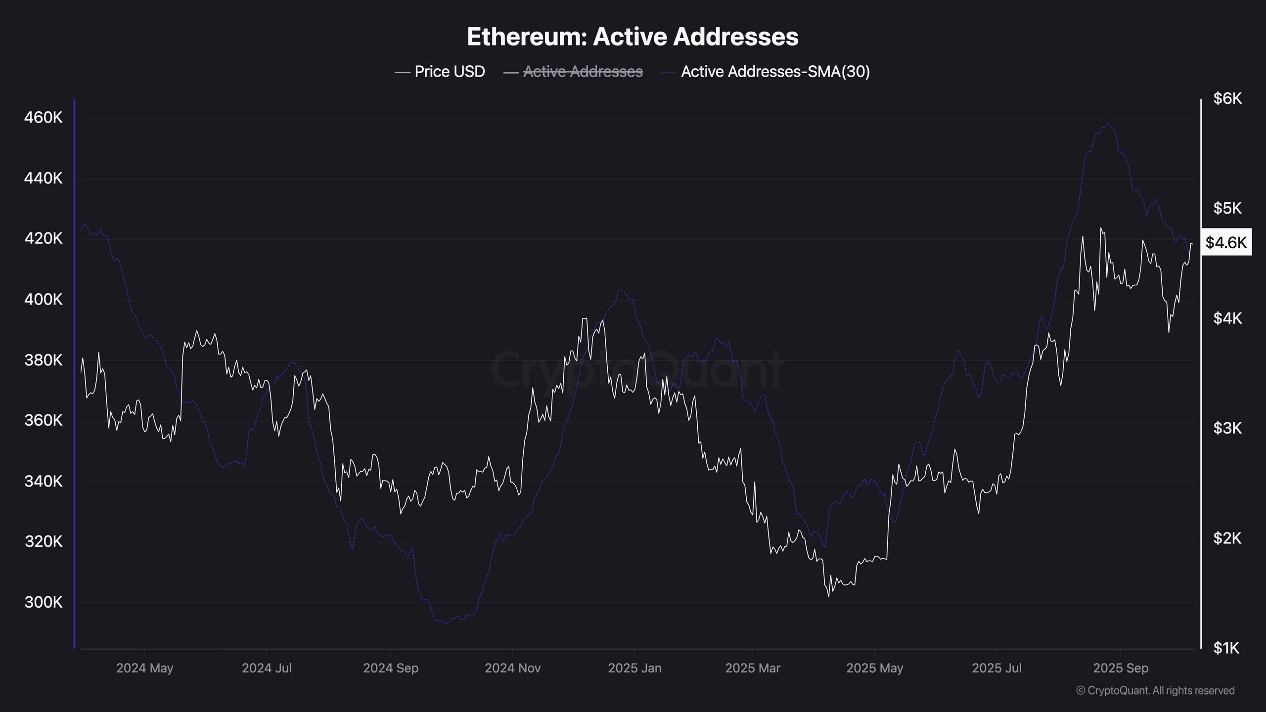 While Ethereum’s price has been rebounding strongly and looks ready to rally higher, on-chain activity tells a slightly different story. The number of active addresses has been dropping slightly recently, even as the price climbs. This shows a short-term disconnect between network participation and market performance.