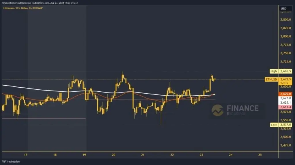 If we managed to catch him, we could expect a jump above the $2700 level. This would form a new weekly high and strengthen the bullish path. After that, it remains to continue with bullish consolidation towards higher levels. Potential higher targets are the $2725 and $2750 levels. A step above these levels is last week’s high of $2780.