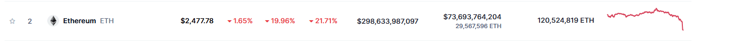 Ethereum [ETH ($2,586.93)] has seen a dramatic price plunge, dropping about 20% within the past 24 hours and falling below the crucial $3,000 threshold.