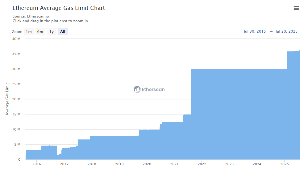 The latest gas limit increase represents the first significant climb since February, when it was raised from 30 million to 36 million.