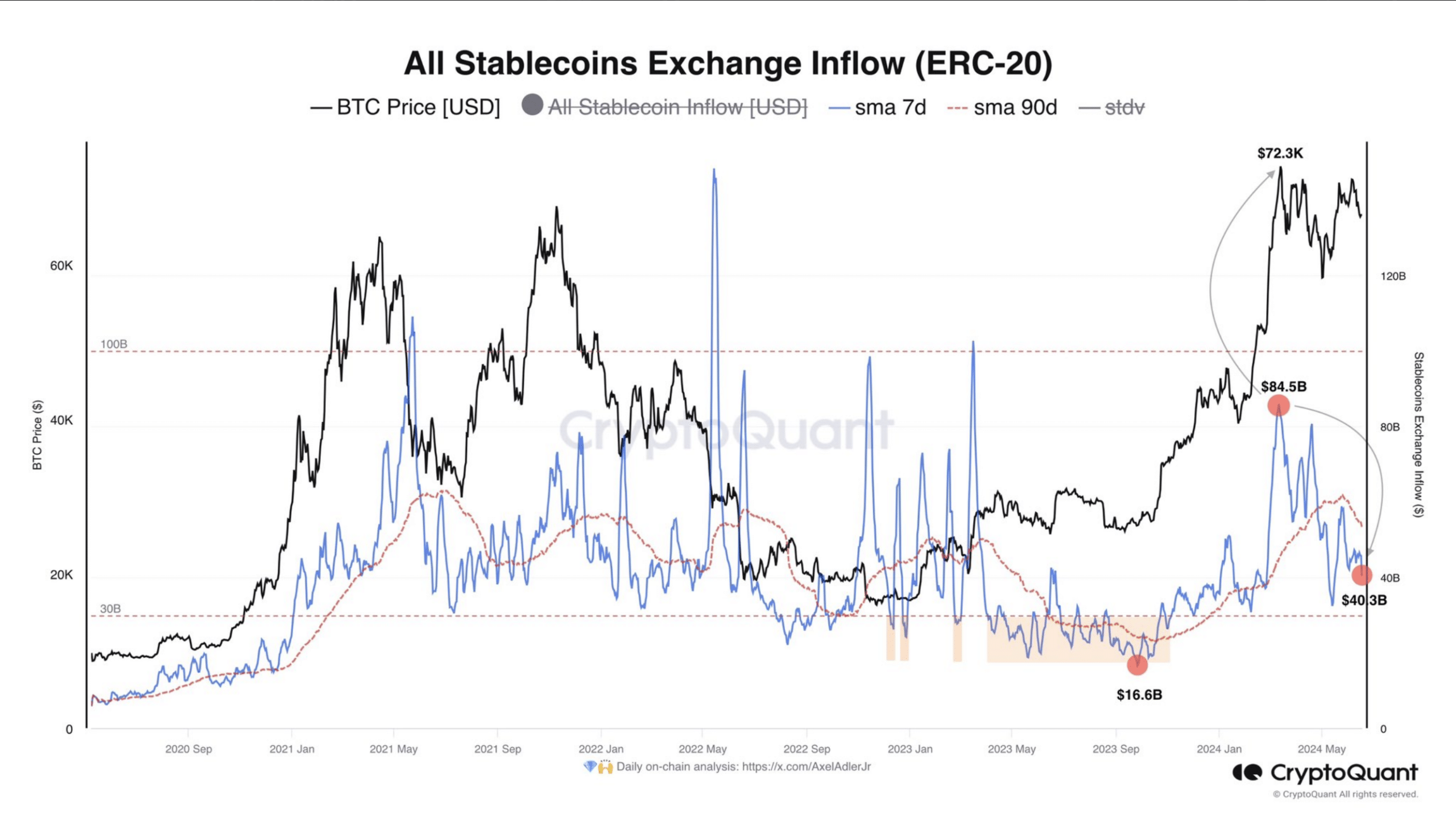 ERC-20 tokens refer to the fungible tokens created using the Ethereum blockchain. Historically, if the stablecoin volume plummets to $30 billion, ETH falls into a bear market. Therefore, the risk was present.