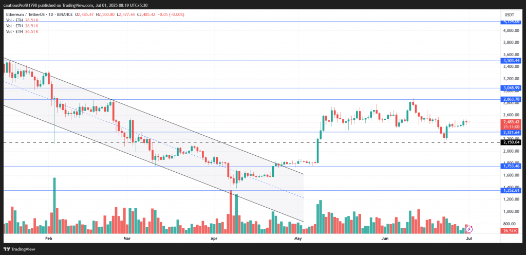 Ether has entered the most bullish phase of a key trading pattern, rallying from $2,200 to $2,500, driven in part by growing institutional demand. According to Glassnode, spot ETH ETFs saw net inflows of 106,000 ETH last week—marking the seventh straight week of positive flows. However, while the macro structure appears strong, near-term risks remain. A large ETH whale recently moved $237 million worth of Ether from staking to exchanges, with over 62,000 ETH transferred to Binance across five days. This redistribution from whales to mid-tier wallets signals potential selling pressure, suggesting that ETH may face short-term headwinds despite the broader bullish setup.