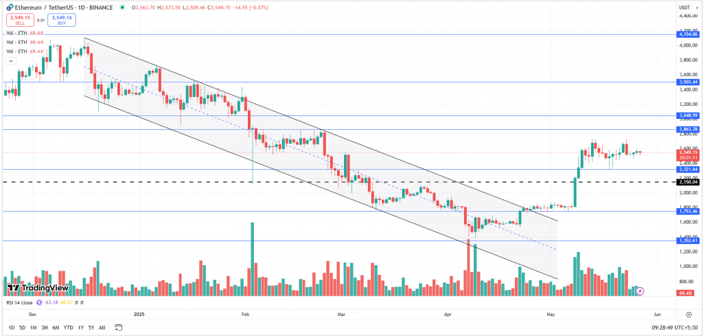 At the time of writing, ETH was trading at $2,550.