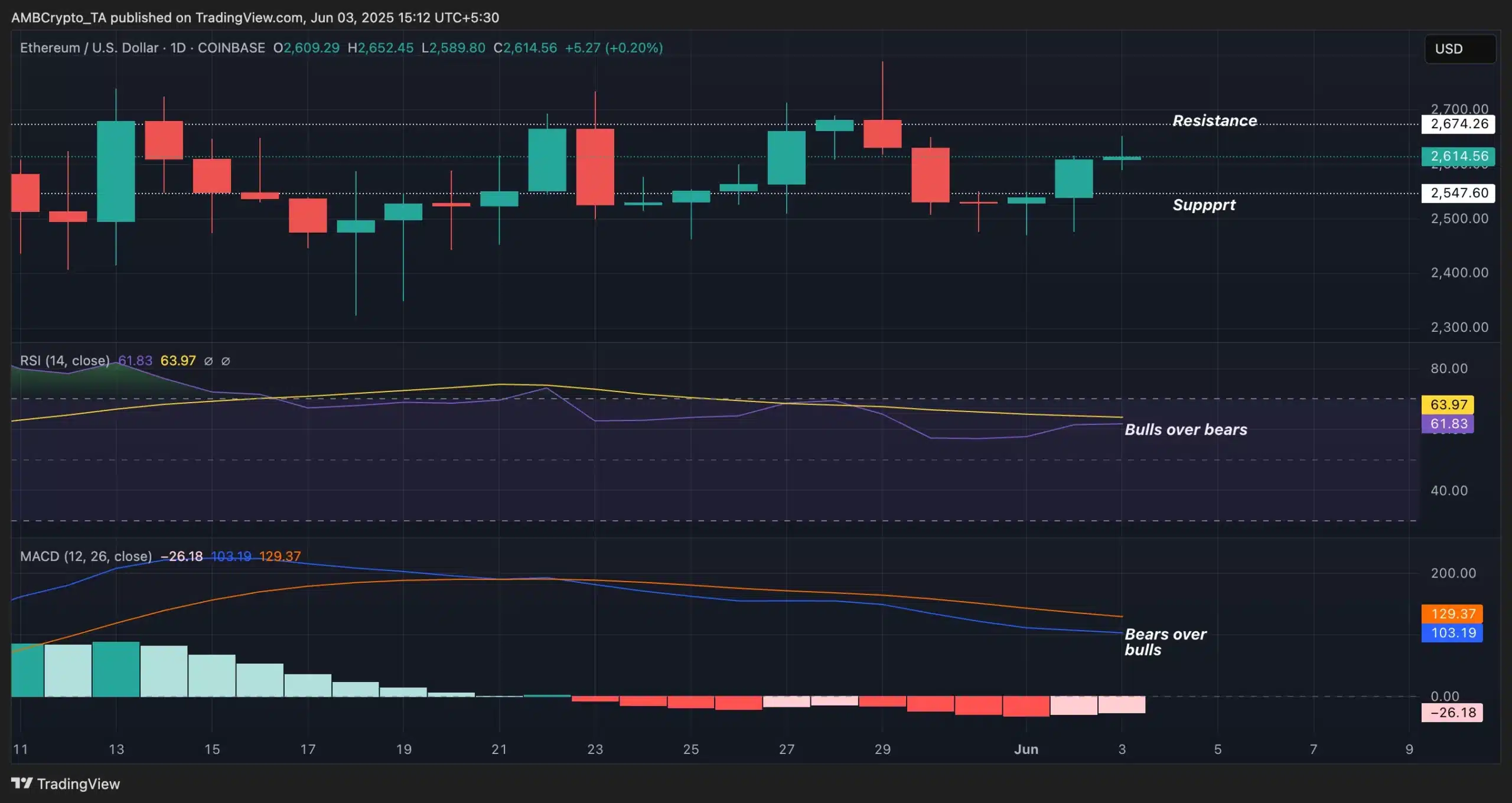 Ethereum [ETH] showed renewed momentum, trading at $2,604.49 at the time of writing after gaining 4.64% in the past 24 hours, according to CoinMarketCap.